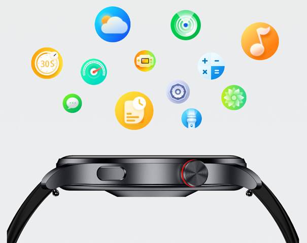 - Az óra olyan hasznos funkciókat kínál, mint a zenevezérlés, időjárás kijelzés, ébresztő, stopper vagy akár ülésre figyelmeztetés. Ezek a mindennapi használat során jelentősen növelik a kényelmet és a hatékonyságot.