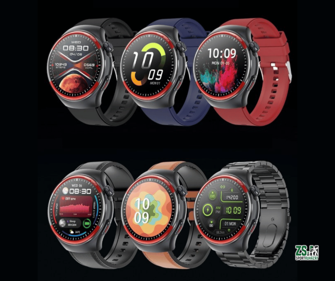 Óralapok: Az AMOLED kijelző kiemelkedő minőségű megjelenítést biztosít. Az alkalmazáson keresztül további számlapokat tölthetsz le, vagy saját képet is beállíthatsz háttérként.