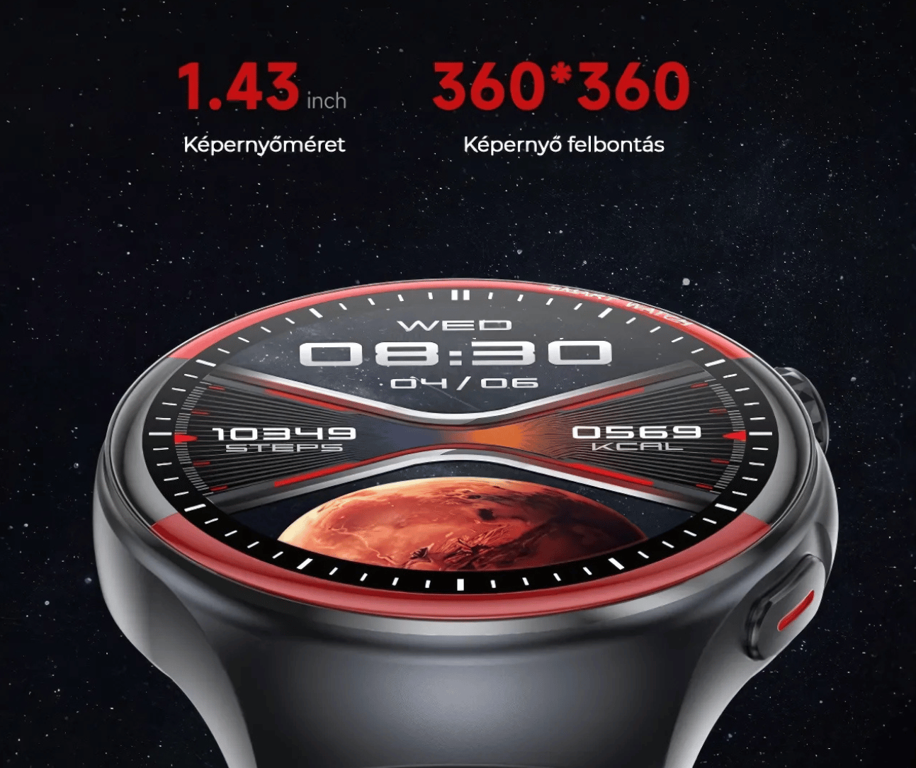 Kijelző: 1,43" IPS, 360x360 felbontás