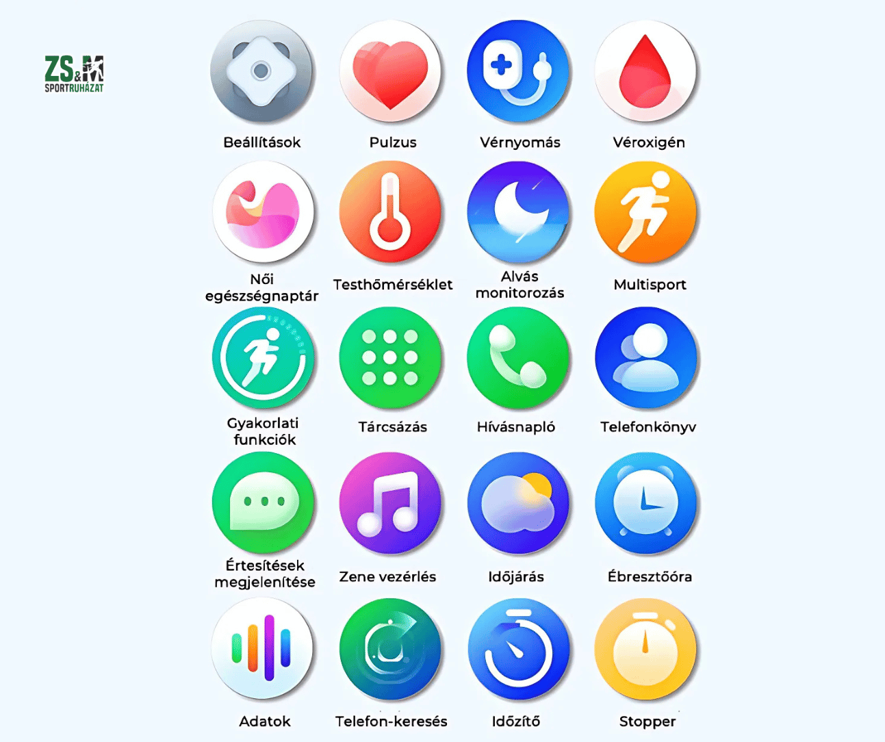A T82 magyar nyelvű okosóra legfontosabb funkciói: