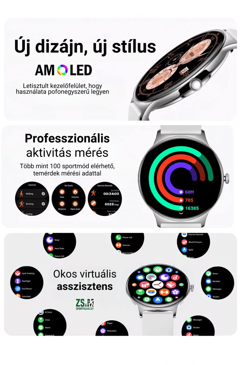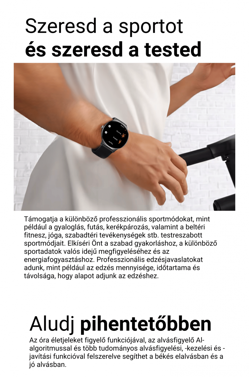 Sportmódok: több mint 100 sportmód közül választhatsz, az értékek az órán és a telefonon egyaránt visszanézhetőek.