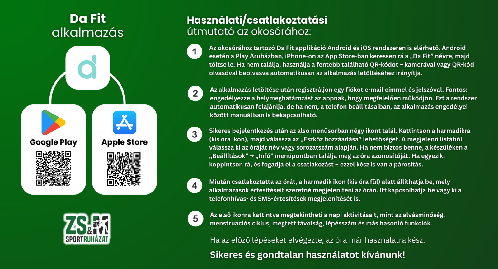 DaFit alkalmazás: a magyar nyelvű alkalmazás segítségével egyszerű az összepárosítás és használat, az appban visszanézheted az összes mérési eredményt, és több beállítást is elvégezhetsz.