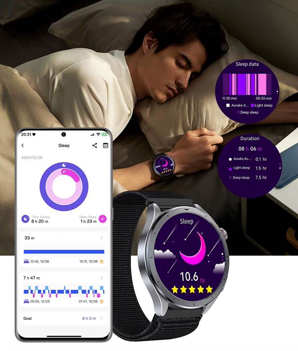 - Automatikusan felismeri, mikor alszol, és elemzi az alvásciklusokat (mély, könnyű és ébrenléti fázisok).