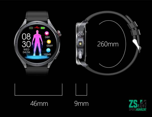 Zerion - AI Magyar Nyelvű Okosóra EKG, Vérnyomásmérés, Vércukorszintmérés, Pulzusfigyelés, Ajándék Fém Pótszíjjal